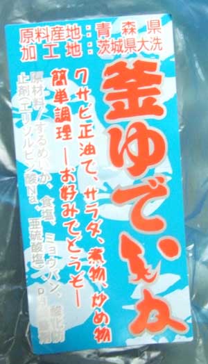 今回の「釜ゆでいか」というのは茨城県大洗町、清水商店のもの。酸化防止剤、pH調整材などが入っているものの、味付けは食塩だけ。青森から持ってきたスルメイカを茹でただけというのがいい。身はぷるんと柔らかい。そのまま生姜醤油でもいいし、酢の物、炒め物に使ってもなかなかうまいものであった。