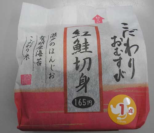 でもサケ科のお握りをしっかり味わって食べるようになって、意外な旨さに、少々考え方に変化が生まれつつある。どうも「コンビニのお握りはうまい」と確信を持つようになってきつつあるのだ。そのとどめ的一個がこの「こだわりおむすび 紅鮭切身」である。