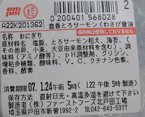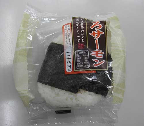 そして肝心な値段だがだいたいサケの平均的な値段が138円なのである。その質、味わいは様々だが、知り合いの女性に聞くと、「お握り2個とお茶で400円弱が目安」だという。とすると165円は高級な物だろう。でも30円ほどの上乗せでこれだけ上質のベニザケをたっぷり使っているのは凄いのではないか? やるな「わらべや日洋」。
