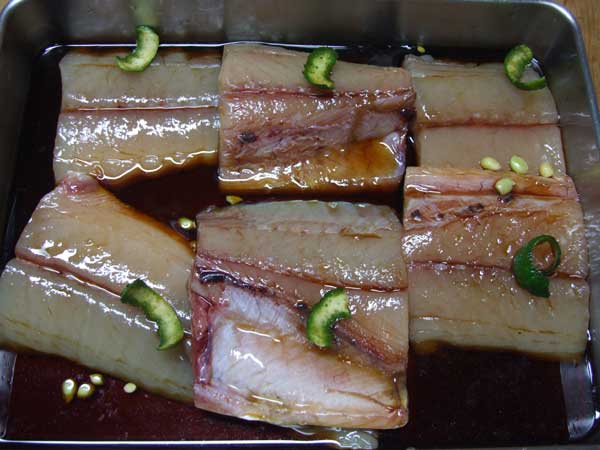 2007年8月30日、八王子魚市場内『海老辰』にあったのがトビヌメリであった。産地は千葉県内房の竹岡。この竹岡は今や江戸前の魚の一大供給地となっている。